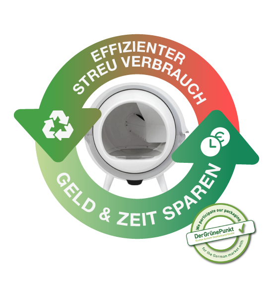 Der KatzenRobo reduziert den Aufwand für das manuelle Reinigen des Katzenklos erheblich. Dies bedeutet weniger Arbeit und weniger Zeit, die Sie mit der Reinigung des Katzenklos verbringen müssen. Durch den rotierenden Filter wird die verschmutzte Streu von der sauberen getrennt, wodurch weniger Streu gewechselt werden muss. Der KatzenRobo spart Geld, da die Streu länger verwendet werden kann. Darüber hinaus hilft das automatische Katzenklo, unangenehme Gerüche zu reduzieren und sorgt für eine kontinuierliche Reinigung des Klos.